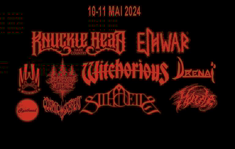 10 groupes 2 thèmes stoner -dark country le vendredi , pagan, black metal , folk metal et transe vicking war le samedi !